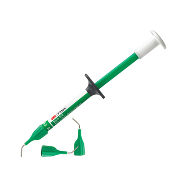La jeringa presenta un émbolo ergonómico y fácil de sujetar junto con una cánula flexible y requiere menos esfuerzo para dispensar, lo que aumenta la comodidad y permite una colocación precisa. La punta mejorada presenta un diseño de pared interior cónica que coincide con el ángulo de la propia jeringa. La superficie cónica continua y lisa permite que la bolsa de aire que se crea con cada nueva colocación, sea empujada fuera de la punta por el flujo delante de la pasta. El cilindro verde funciona como indicador de la cantidad de compuesto fluido que queda. Cuando no se ve más el color verde en la jeringa, quiere decir que el producto está agotado. El émbolo incluye una función de ventilación que permite que el aire escape durante el proceso de fabricación, lo que resulta en prácticamente ninguna burbuja o "escurrimiento."