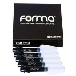 FORMA es una resina compuesta fotoactivada con excelentes propiedades mecánicas. Es capaz de lograr el equilibrio ideal entre la estética de las restauraciones directas y el color natural del diente en un solo incremento. Su fórmula con circonia y trifluoruro de iterbio también permite que todos los colores FORMA presenten excelentes propiedades ópticas, translucidez, opacidad y fluorescencia ideales en comparación con las características naturales del diente. FORMA tiene una excelente consistencia, lo que la convierte en una resina muy fácil de tallar y sencilla de pulir, aportando un brillo superficial sorprendente. Tiene una mayor carga ofreciendo resistencia y durabilidad, incluso en incrementos muy finos.