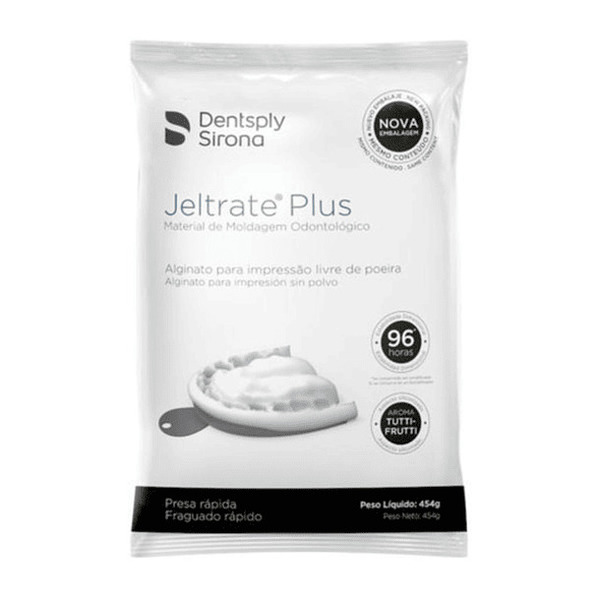 Jeltrate® Plus Dentsply Sirona es un Alginato tipo I o de fraguado rápido y libre de polvo para toma de impresiones.