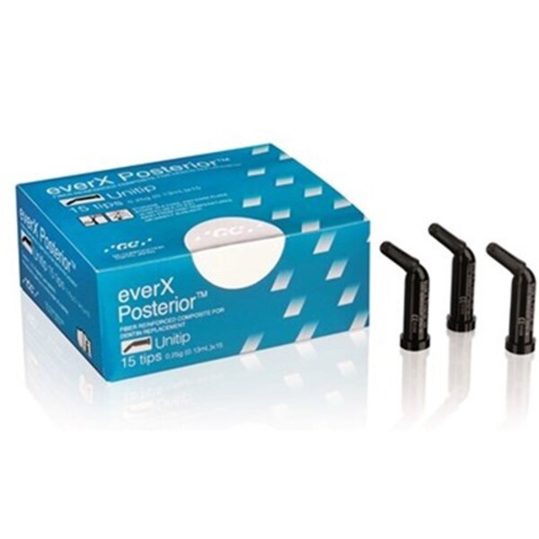 GC everX Posterior es un composite reforzado con fibra diseñado para utilizarse como sustituto de dentina. Las cortas fibras de everX Posterior lo convierten en una subestructura perfecta para reforzar cualquier restauración de composite en cavidades de gran tamaño.