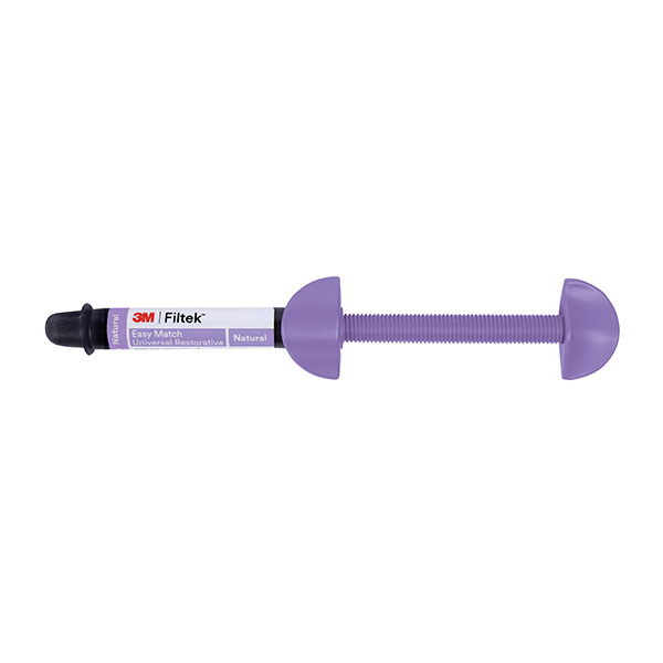 Filtek™ Easy Match Universal Restorative es un sistema de tonos simplificado diseñado para agilizar las restauraciones de un solo tono desde el principio, al mismo tiempo que proporciona la flexibilidad necesaria para encontrar una coincidencia para la mayoría de los pacientes. El tono Natural se ajusta a la mayoría de los casos; para el resto, seleccione los tonos complementarios Bright y Warm. Ya sea anterior o posterior, puede trabajar de manera intuitiva, sin necesidad de un opacador. Además, obtendrá el mismo rendimiento, manejo y estética que espera de los productos Filtek™ Dental Restoratives.